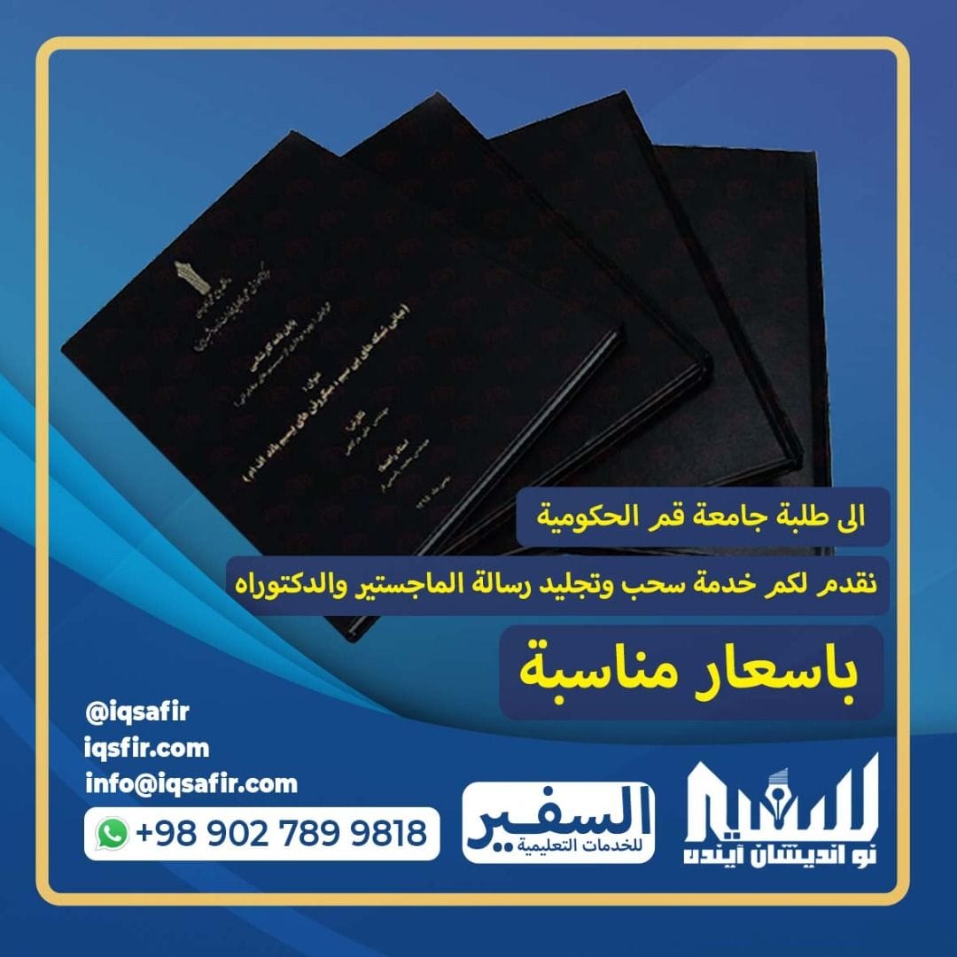 نقدم لكم خدمة سحب وتجليد رسالة الماجستير واطروحة الدكتوراه