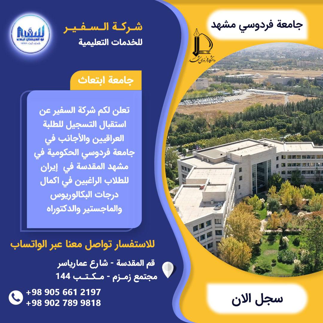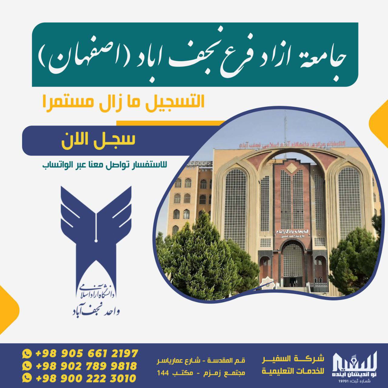 تعلن لكم شركة السفير (سفير نو انديشان اينده) عن فتح التسجيل على جامعة ازاد نجف اباد الواقعة في اصفهان المعترف بها ضمن دليل الجامعات النفقة الخاصة و الخاص بوزارة التعليم العالي العراقية الجديد لشهر الثاني من سنة 2024 .