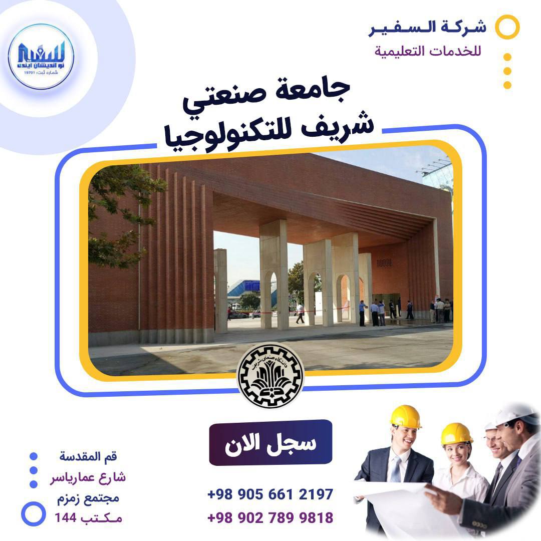 تعلن لكم شركة السفير عن استقبال التسجيل للطلبة العراقيين والأجانب في جامعة شريف التكنولوجية في طهران والتي تعتبر ضمن جامعات الابتعاث للطلاب الراغبین في اكمال درجات الماجستیر والدکتوراه .