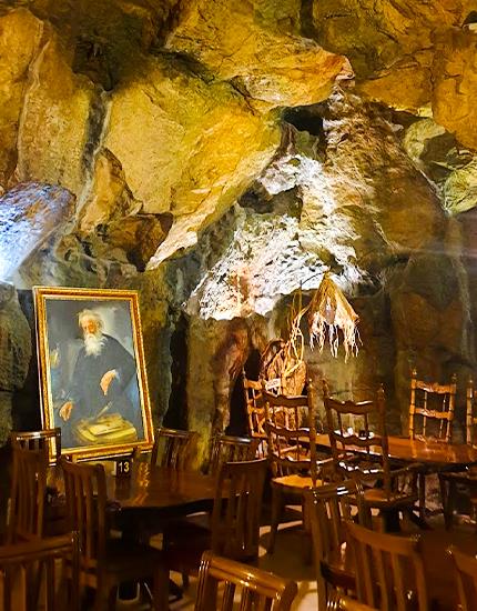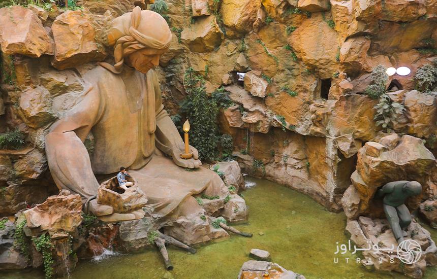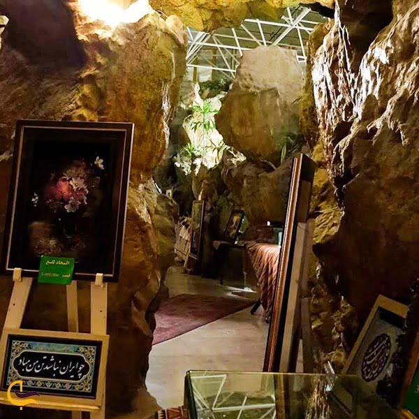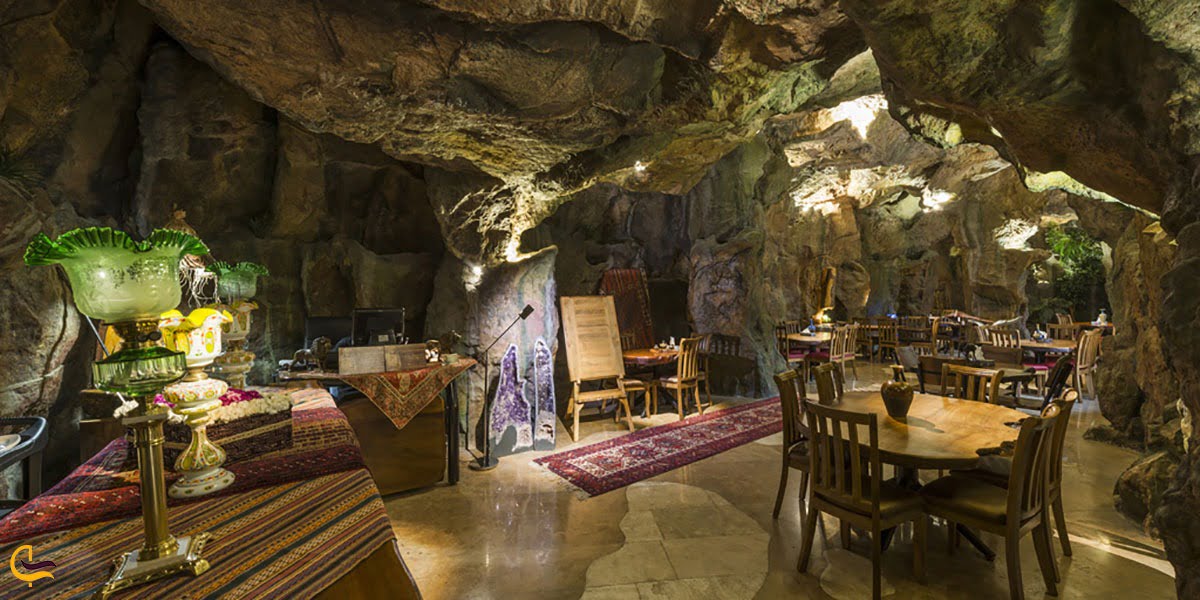 الجزء الجذاب والمثير لهذا المنتجع هو الكهف المبني خلف الصخور، إذ تم تصميم الجزء الداخلي من هذا الكهف بحيث يمكنك مشاهدته من العصر الحجري القديم حتى يومنا هذا من خلال النقوش على جدران الكهف وأحجاره ورؤية أشياء تلك الحقبة في هذا الكهف. يبدو هذا الكهف طبيعيًا من جميع النواحي للزائرين لوجود فوانيس تتدلى من السقف والأشكال المنحوتة على جسم الحجارة لا يمكن التعرف عليها. ومن المثير للاهتمام معرفة أن هذا القسم مخصص للمعرض الفني والمطعم، ويعمل مع التصميم الداخلي مثل الكهف، حيث يتم عرض الأعمال الثمينة والرائعة. ويمكن دخول هذا القسم من خلال 3 طرق: الباب القديم وأبواب الطابق الأول والأرضي.