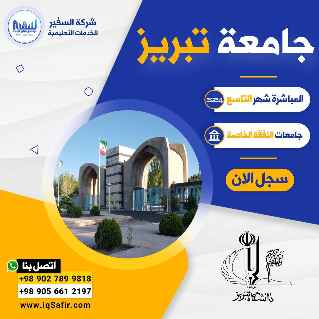 تعلن لكم شركة السفير في قم المقدسة عن فتح التسجيل في جامعة تبريز الحكومية على شهر التاسع الميلادي من عام 2024 م والتي تعتبر من جامعات الابتعاث للموظفين والغير موظفين علماً بان الماجستير يكون اربعه كورسات والدكتوراه البحثية ستة كورسات دراسية .الاقساط الدراسية : الماجستير...