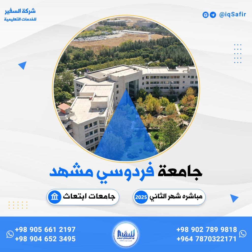 تعلن لكم شركة السفير عن استقبال التسجيل للطلبة العراقيين والأجانب في جامعة فردوسي الحكومية في مشهد المقدسة في إيران للطلاب الراغبین في اكمال درجات البكالوريوس و الماجستیر والدکتوراه على شهر الثاني من عام 2025م.