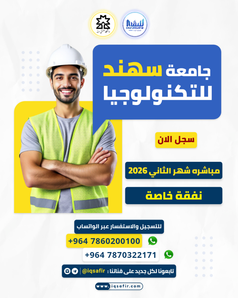 تُعد جامعة سهند للتكنولوجيا (Sahand University of Technology) من أبرز صروح التعليم الهندسي والتكنولوجي في إيران، ووجهة استراتيجية للطالب العراقي والعربي الطامح إلى التميز في مجالات الهندسة والعلوم التطبيقية. تحظى الجامعة باعتراف أكاديمي واسع، وتفتح أبوابها للطلاب الدوليين بدءاً من الفصل الدراسي الثاني 2026، لتكون محطة أساسية لبناء مستقبل مهني مشرق.